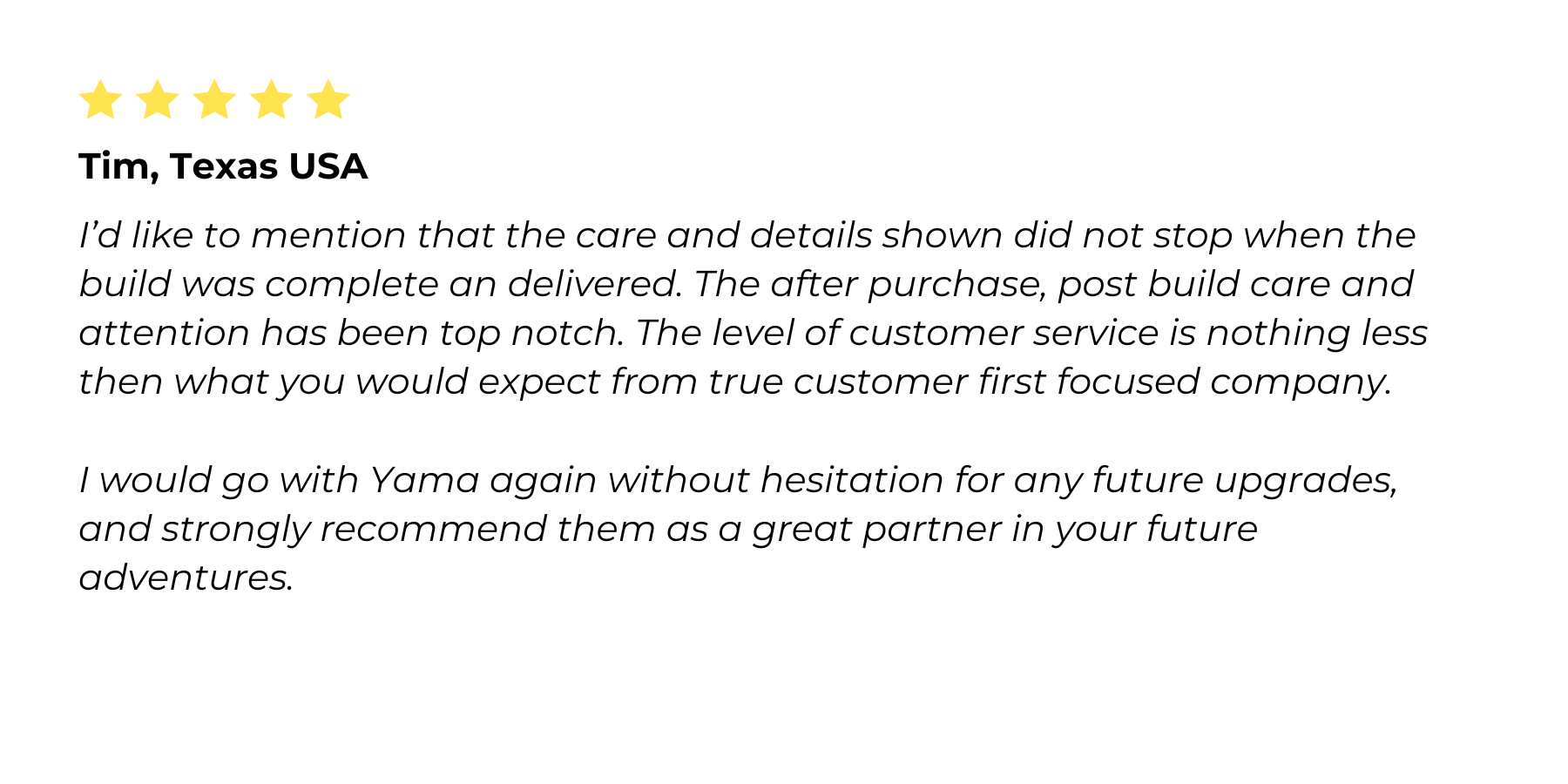 At Yama Vans, we're not just in the business of building epic off-grid vans; we're in the business of building long-standing relationships with our clients. Your journey doesn't end once we hand over the keys to your new Yama Van; in fact, it's just the beginning!