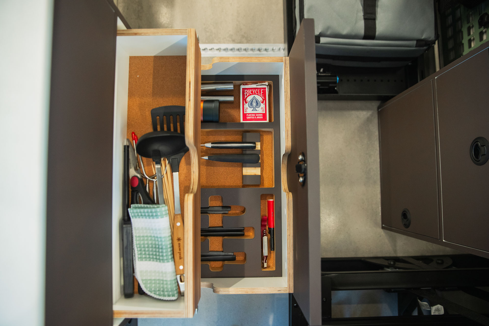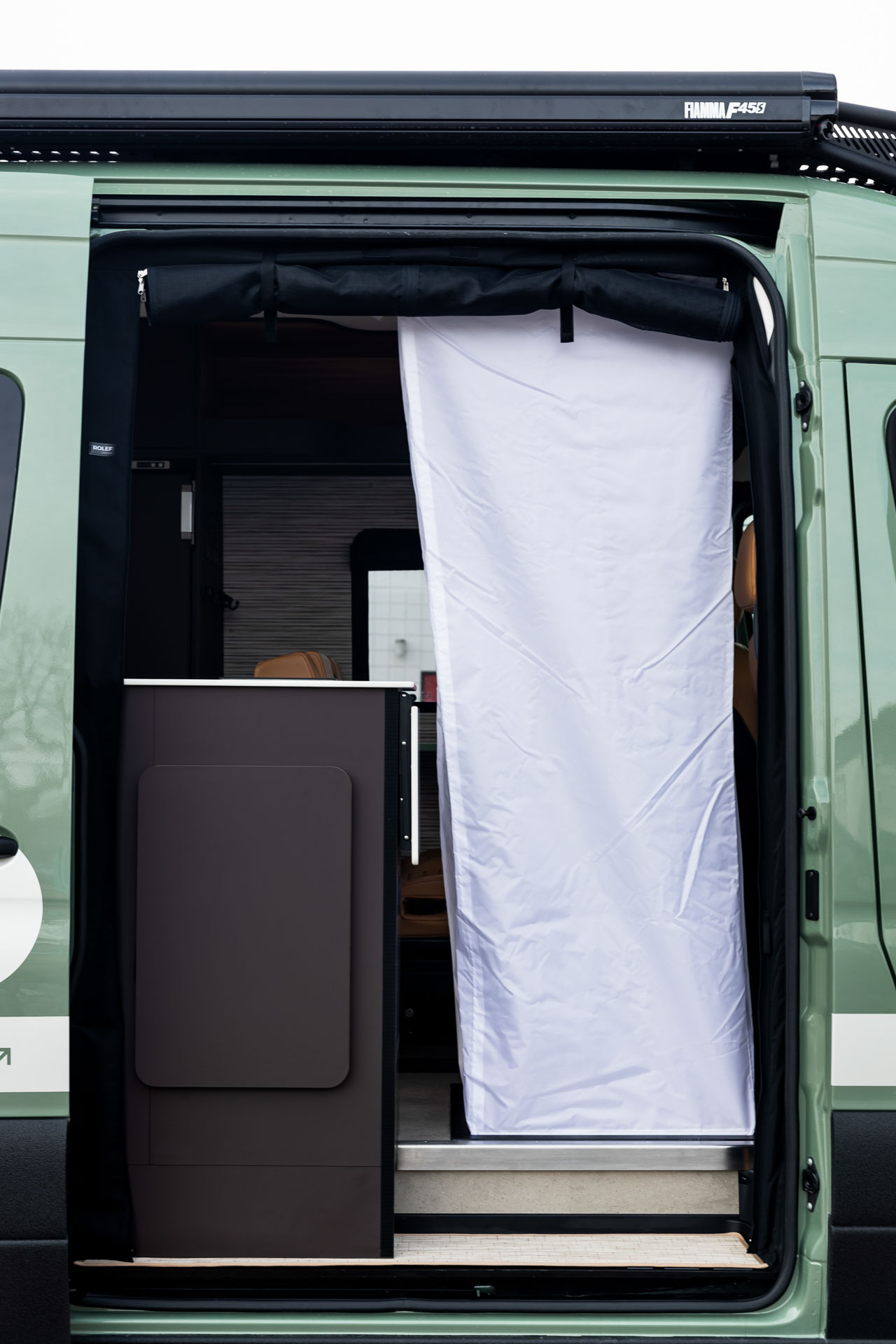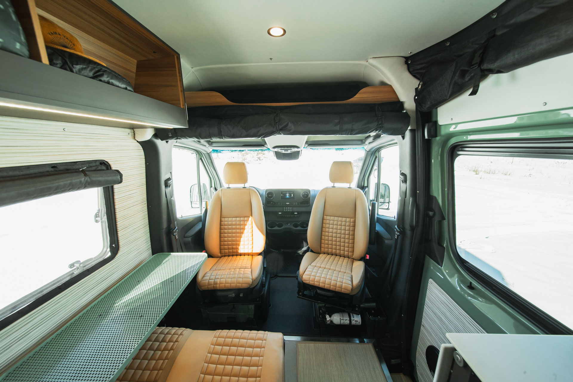 From the timeless palette to the nostalgic textures and more, the Grand Teton was inspired by Land Rover’s iconic Defender 90. Designed with both comfort and excitement in mind, this van is for people unwilling to compromise—people who want to play in the wilderness all day and enjoy a hot shower and warm meal right after.