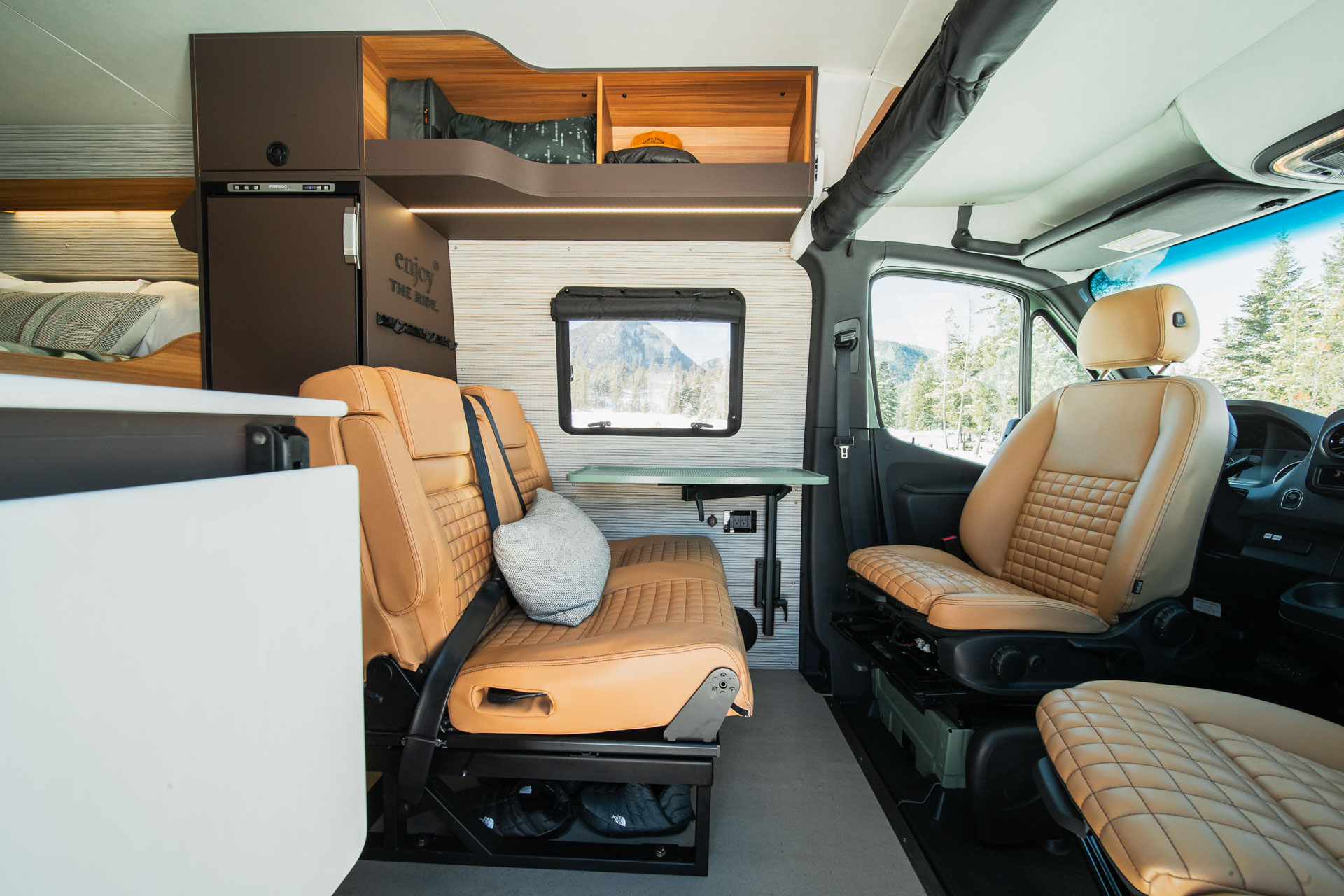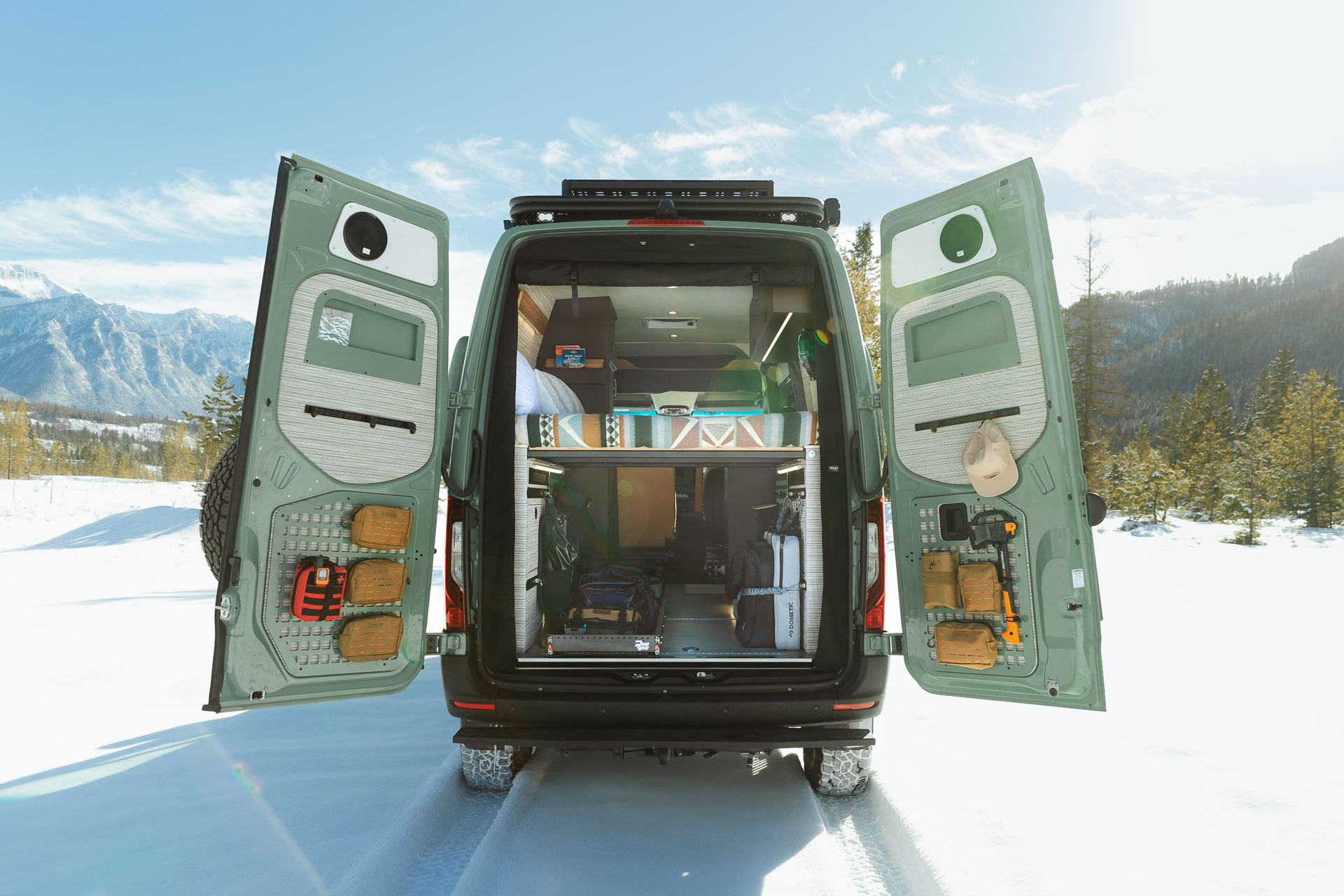 Don’t let the clean lines and polished finishes fool you, this van begs to get its proverbial hands dirty and tackle the most challenging terrains. (The) Grand Teton is a true off-road warrior made for off-grid adventure enthusiasts. With its durable exterior and elevated interior, it’s ready and revved up to get you there and get it done—wherever “there” is and whatever “it” is.