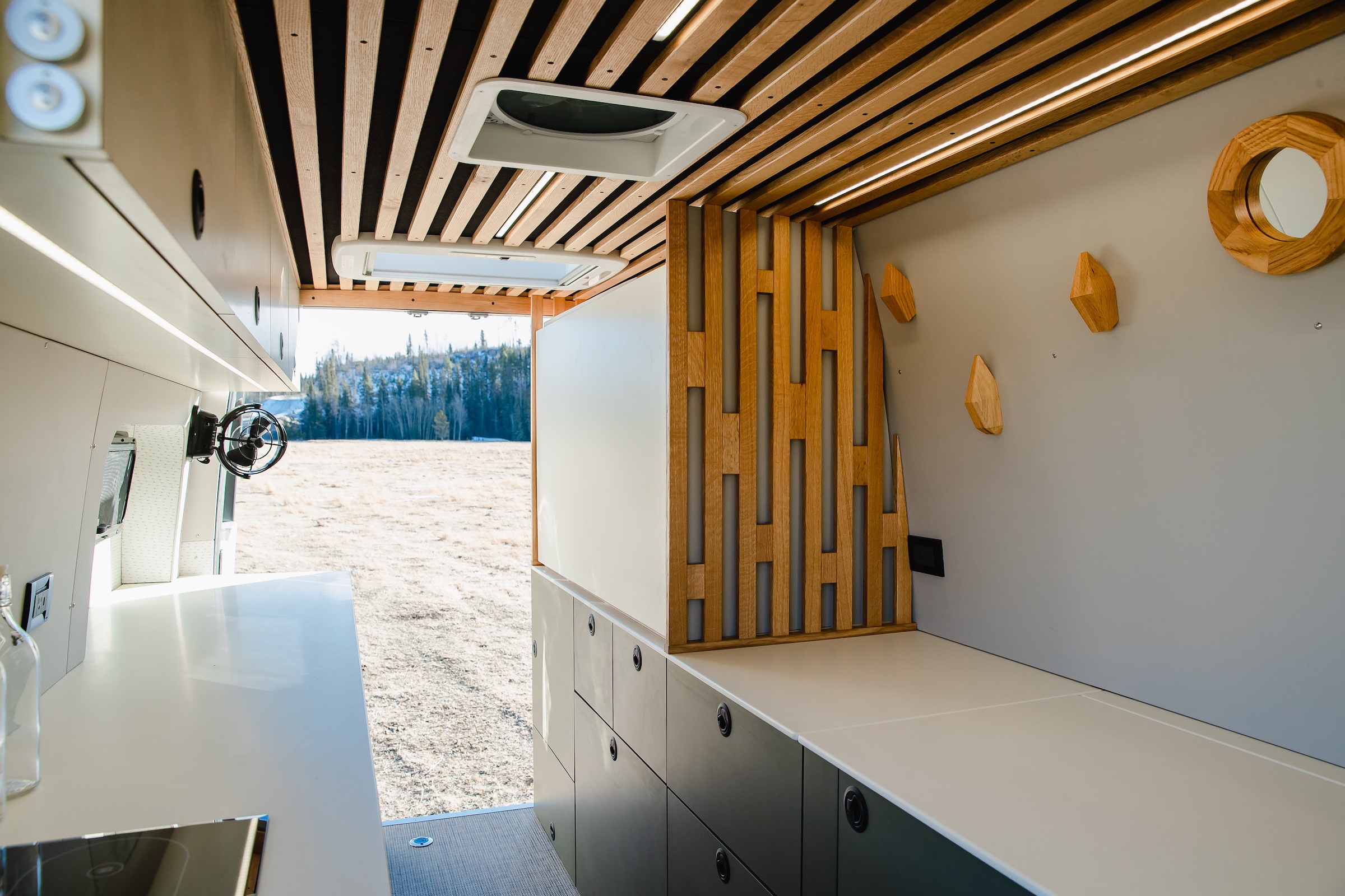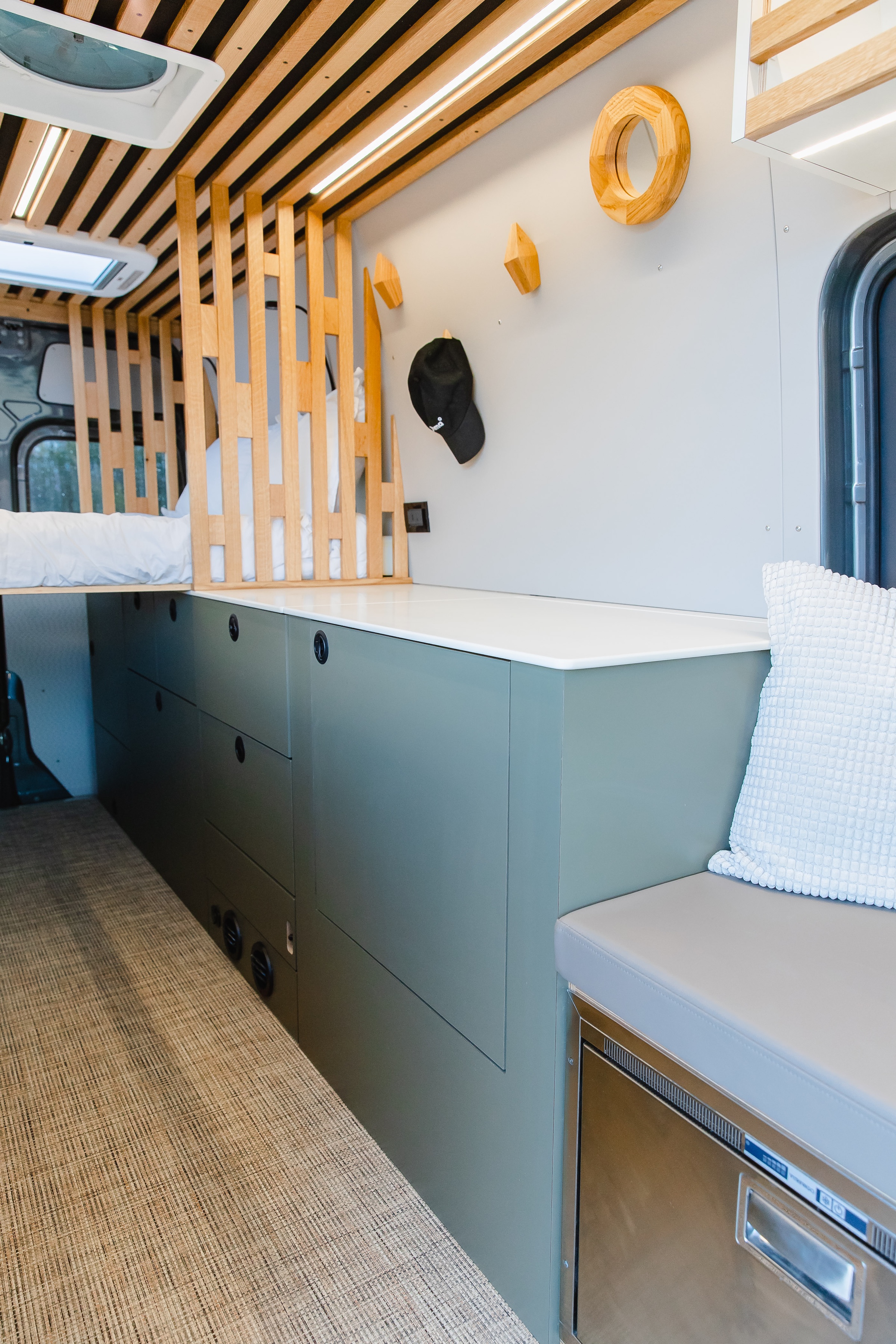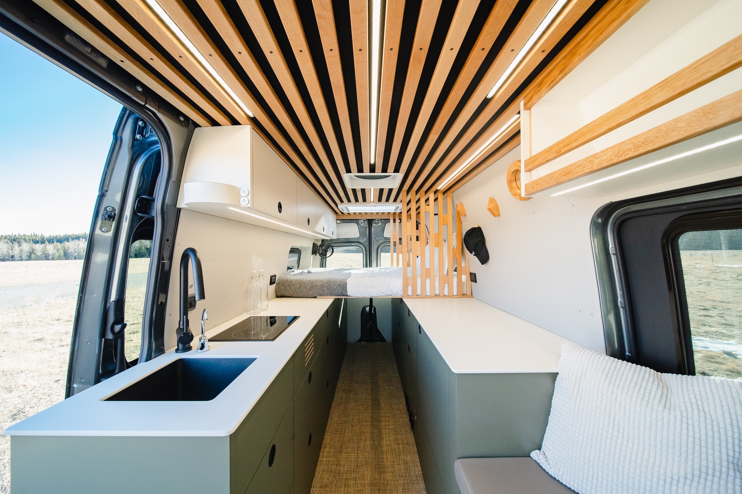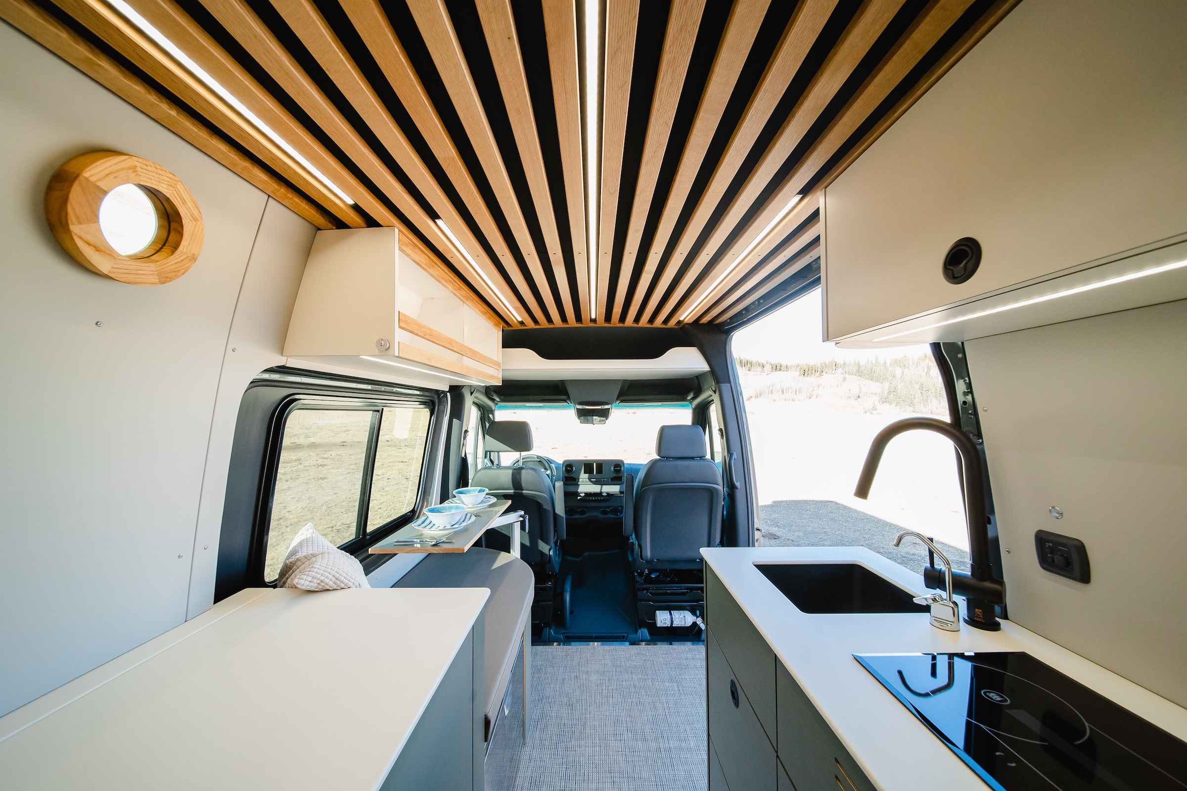 Hohm was built so the feeling of home can follow you anywhere. This 170” 4x4 is a bright, inviting retreat, wrapped in custom woodwork and thoughtful details throughout. A space-saving Murphy bed, off-grid kitchen, cube shower, and lounge-worthy bench seat make comfort feel effortless wherever you park. After starting its story under the Southern California sun, Hohm is ready for its next adventure–and the next person to call it Hohm.
